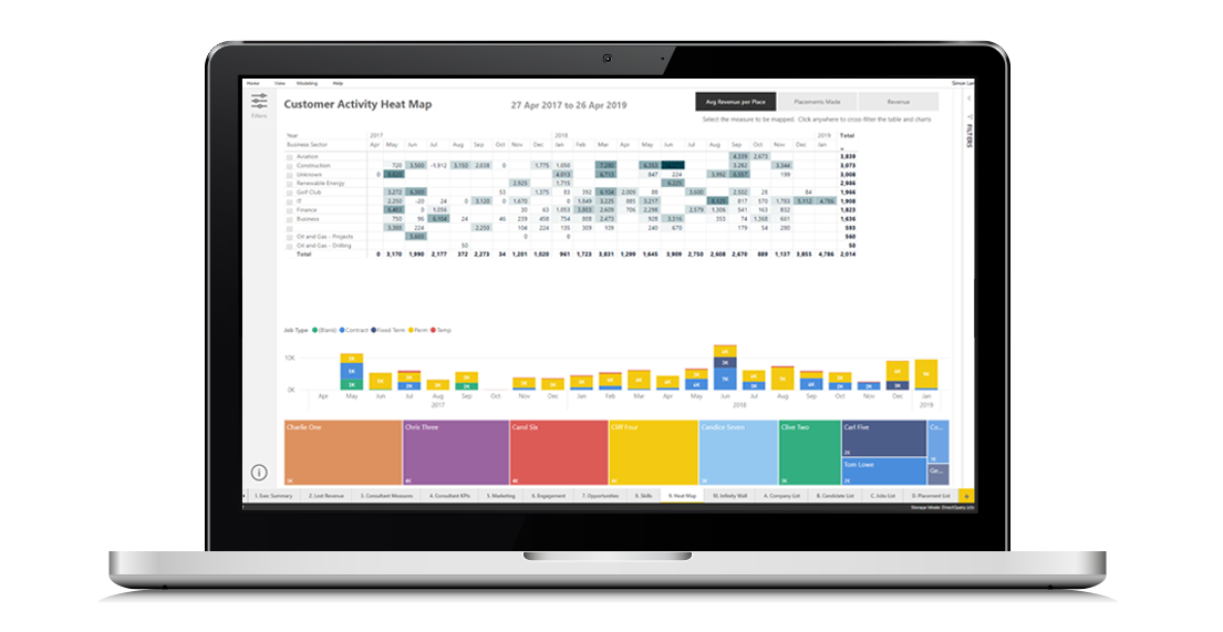 Gaining a deep business intelligence about your recruitment operation and sharing it with your team allows you to switch from one sector to another before the bottom falls out of that market. Or alternatively, you can move the focus from temp to perm, advertise in the right areas, reduce spend, increase activity and track conversion ratios at pace, and with ease.